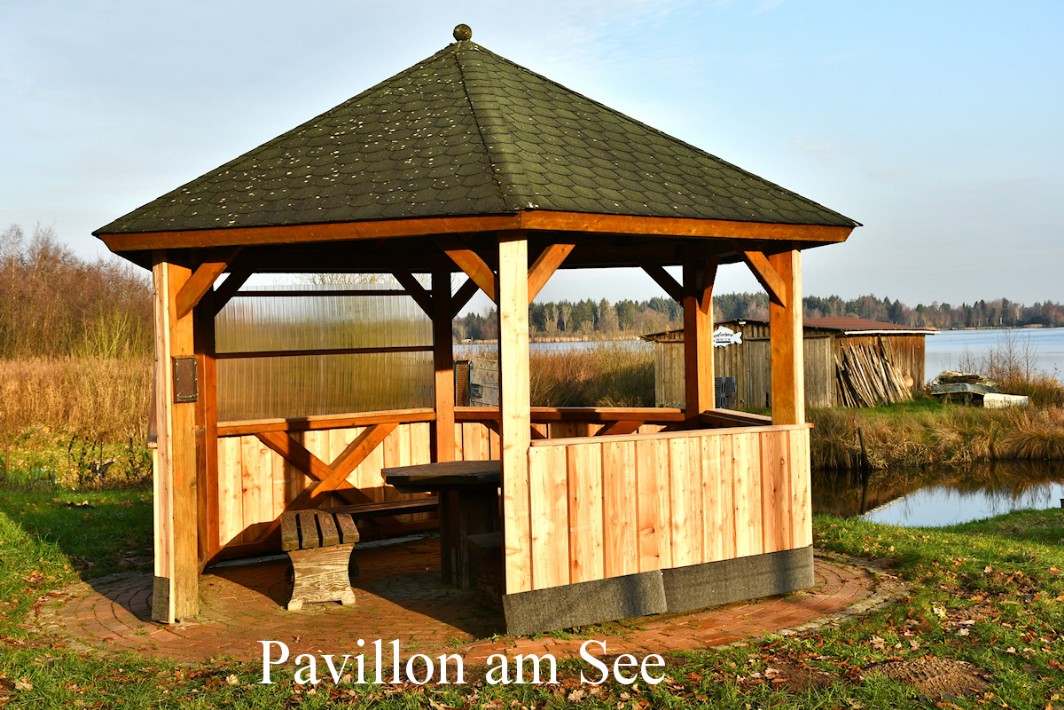Pavillon, Hütten, Bänke und Tafeln gebaut oder aufgestellt. Die Bänke müssen renoviert oder restaureirt werden.