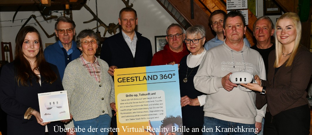 Im Februar übergab die Stadt Geestland dem Heimatverein ihre erste Virtual Reality Brille. Dabei handelt es sich um eine Art Brille, mit der gespeicherte Original-Fotoaufnahmen betrachtet werden können. Sie ermöglicht dem Träger eine Rundumsicht an bestimmten Orten, ohne dass er sich dort sebst aufhalten muss.