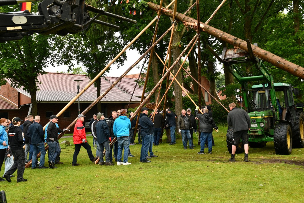 Zum altgepflegten Brauchtum gehört an Pfingsten das Aufstellen einer mit frischem Grün, Girlanden und Blumen geschmückten Tanne, einem Maibaum.